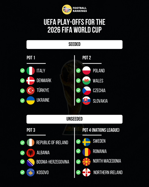 România va juca semifinala barajului pe teren străin, urmând ca locul de disputare al finalei să fie tras la sorți. În primul meci, România va înfrunta una dintre Italia, Turcia, Danemarca sau Ucraina, toate din urna 1.