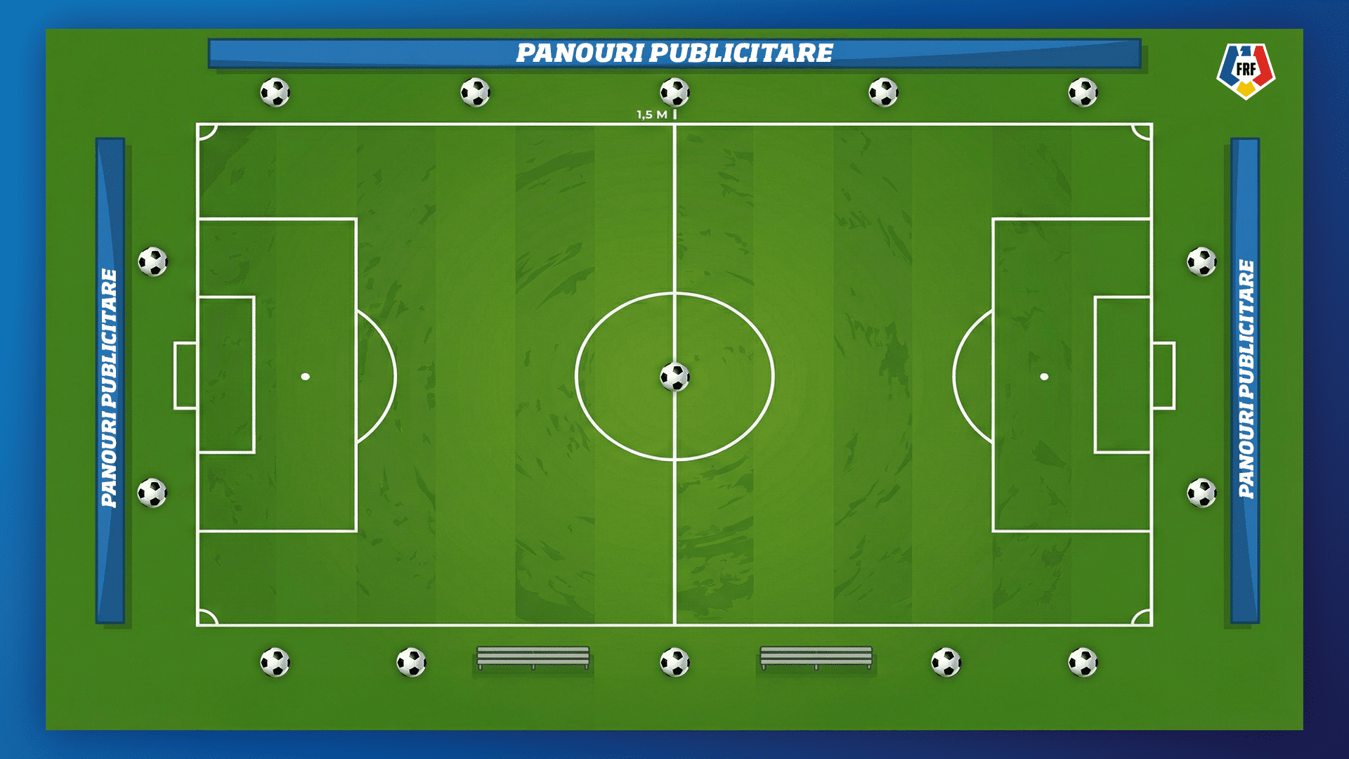Dintre acestea, câte două mingi vor fi poziționate în spatele fiecărei linii de poartă, iar restul vor fi distribuite de-a lungul marginilor terenului, conform schemei stabilite de organizatori.
