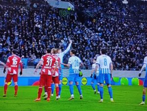 Minutul 16 – Mainz execută a doua lovitură de la colțul terenului. Defensiva olteană respinge și încearcă să treacă de centrul terenului, dar atacurile poziționale sunt destrămate ușor de pressingul jucătorilor germani.