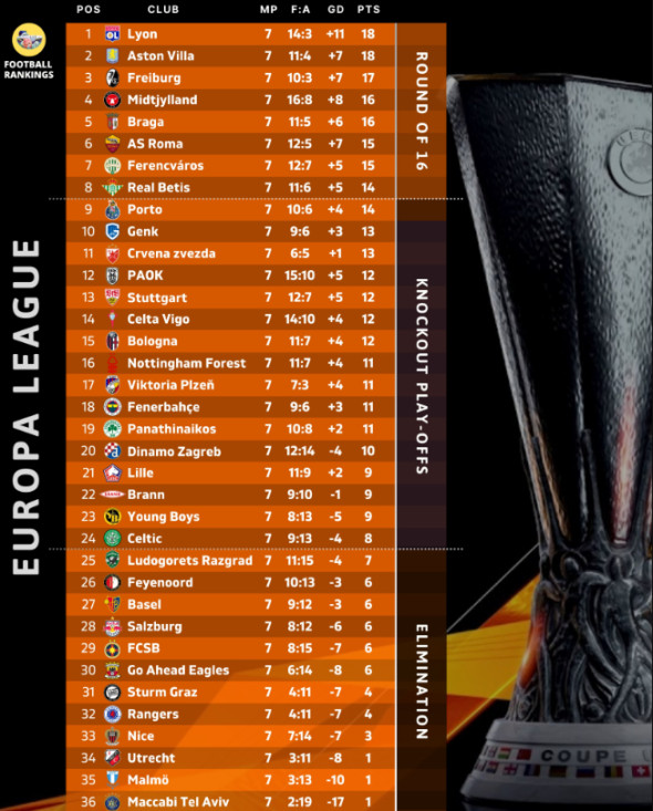 - Feyenoord să piardă sau să scoată maximum un egal cu Real Betis. În cazul în care se va impune, trebuie să aibă un golaveraj mai slab decât FCSB. În prezent, olandezii au -3.