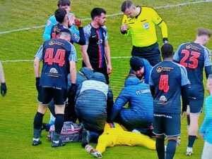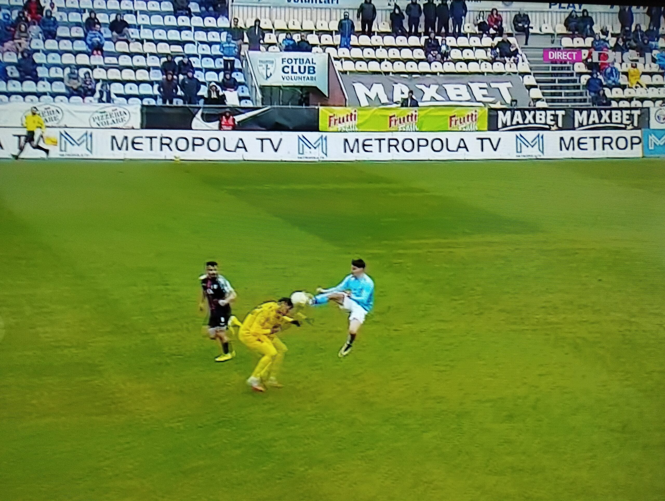 În minutul 61, Schieb l-a lovit pe Isvoranu cu piciorul în moalele capului, Moroiță a așteptat să vadă sânge, dar cum capul goalkeeper-ului târgoviștean nu a suferit daune majore jucătorul Voluntariului a primit doar cartonașul galben! Să vezi și să nu crezi!