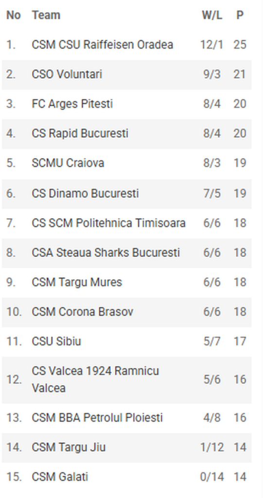 Foto captură frbaschet.ro – Clasament LNBM – Etapa 13