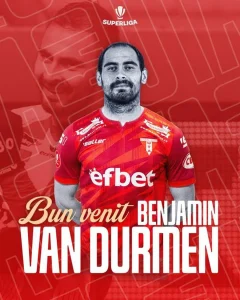 „Bun venit, Benjamin van Durmen! Mijlocașul central Benjamin van Durmen este de astăzi noul jucător al UTA. În vârstă de 27 de ani, belgianul a evoluat ultima dată tot în Superligă, la FCU Craiova 1948, pentru care a adunat 28 de jocuri în sezonul precedent, perioadă în care a punctat de 5 ori.