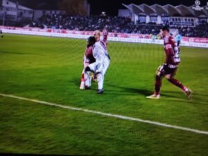 Minutul 35 – O nouă ocazie imensă ratată de Rapid! Koljic nu reușește din cinci metri să trimită mingea în poarta gazdelor! Balonul trimis de atacantul bosniac a lovit stâlpul din stânga portarului Anestis!