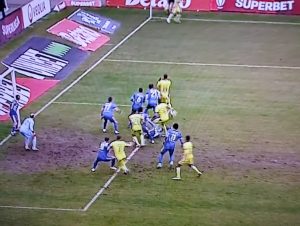 Minutul 64 – Paul Papp gafează și Fkorin Purece execută un corner, de pe flancul stâng.