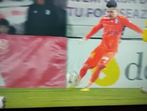 Minutul 82 – GOOOLL U CLUJ – Portarul Cătălin Căbuz, proaspăt chemat la echipa națională în locul lui Mihai Popa, accidentat, dă pe lângă mingea trimisă de Borța și clujenii au 1-0 pe tabelă!