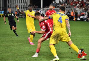 Minutul 56 – Ișfan și Hanca au ținut să ne contrazică. Șutul lui Isfan a fost respins de Golubivic în lateral, iar Hanca a reluat peste poarta dinamovistă.
