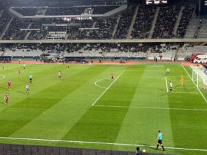 Minutul 4 – GOOOLL U CLUJ – Oucasse Mendy centrează din fkancul stâng și Jovo Lukic deviază mingea cu capul în poarta oaspeților!