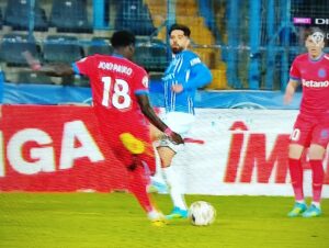 Minutul 43 – GOOOLL FARUL – Ionuț Vînă centrează din flancul drept, Ștefan Târnovanu intervine aiurea și respinge mingea direct în picioarele lui Radaslavescu, iar acesta înscrie în poarta goală.