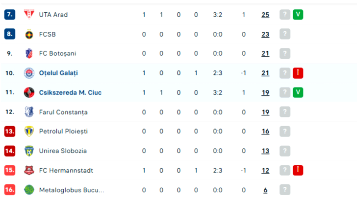 Play-out SuperLigii a început în forță, cu sete mare de goluri, cinci în primul meci jucat la Arad, între UTA și Hermannstadt, scor 3-2, și alte cinci astăzi, la Galați, unde Csikszereda a învins-o pe Oțelul cu scorul de 3-2.