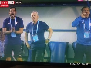 Minutul 57 – Nicio îmbunătățire în evoluția celor două echipe. S-au înmulțit faulturile și protestele inutile ale jucătorilor la deciziile arbitrului Iulian Călin.