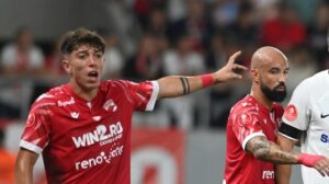 Minutul 5 – Amzăr este faultat de argentinuanul Marhioni la centrul terenului, iar arbitrul Vidican îi arată cartonașul galben.