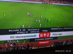 FC Hermannstadt i-a dat Politehnicii Iași cu terenul în cap, scor 6-2, într-o partidă din cadrul etapei a 8-a.